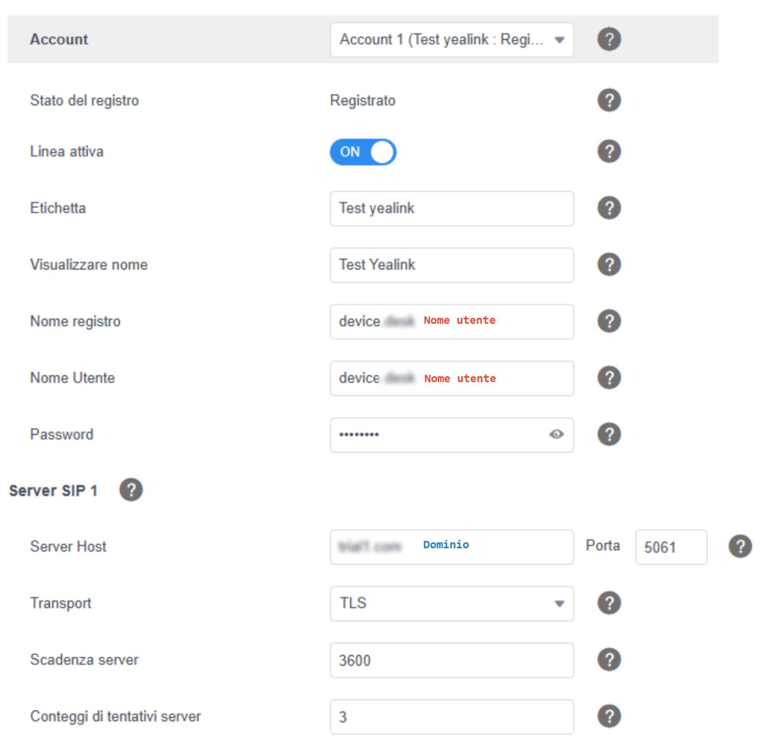 Nota: La piattaforma utilizza SIP sicuro (SIPS) tramite TLS sulla porta standard 5061. Inoltre, l’uso di SRTP è obbligatorio per la cifratura dei flussi audio. Assicuratevi che il vostro dispositivo supporti queste impostazioni di sicurezza per poter completare correttamente la registrazione e la gestione delle chiamate.