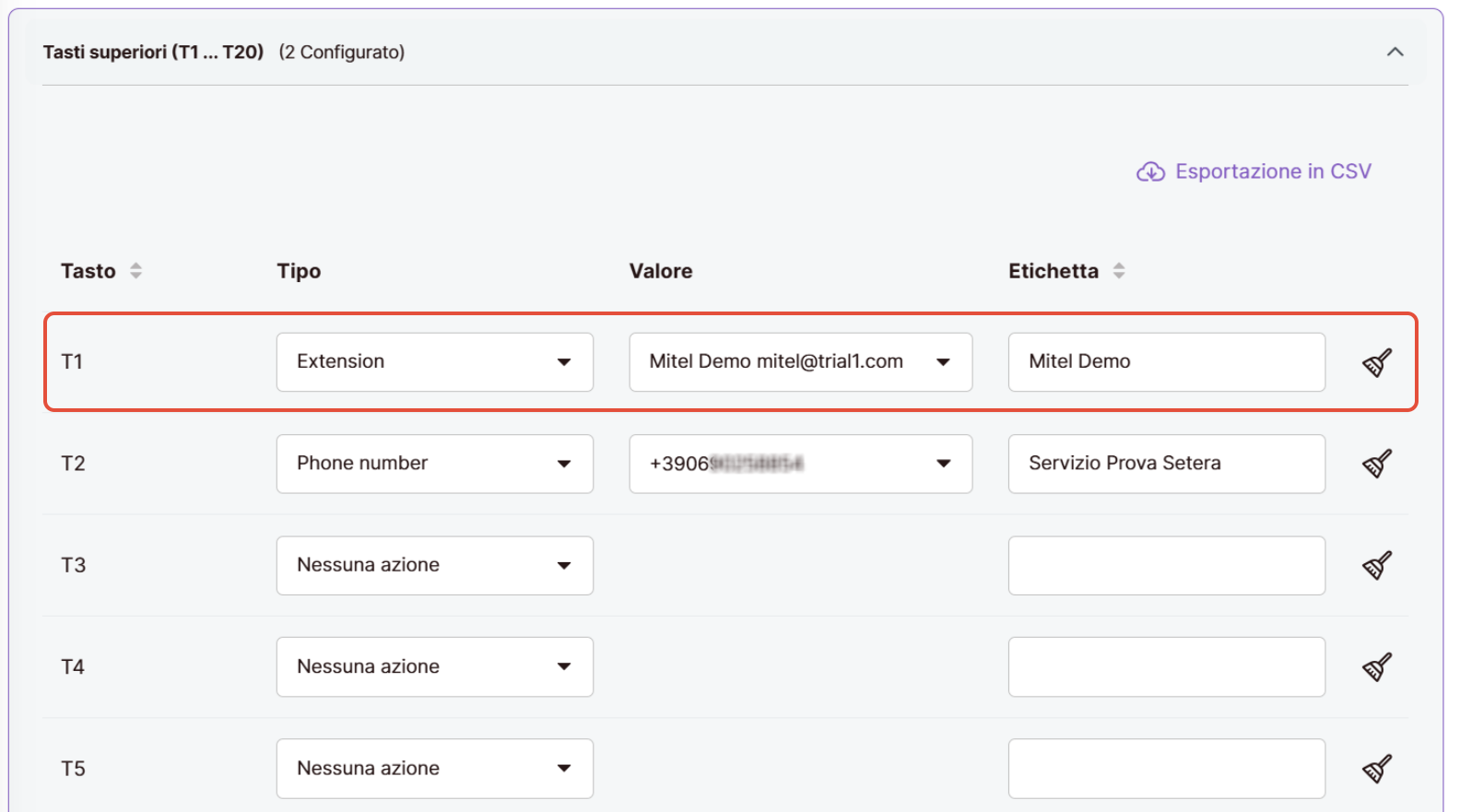 Per i telefoni Mitel rimane necessaria la configurazione attraverso il Provisioning URL, è possibile copiare tale dato cliccando il link Provisioning URL per Telefoni Mitel situato nell'angolo superiore destro.