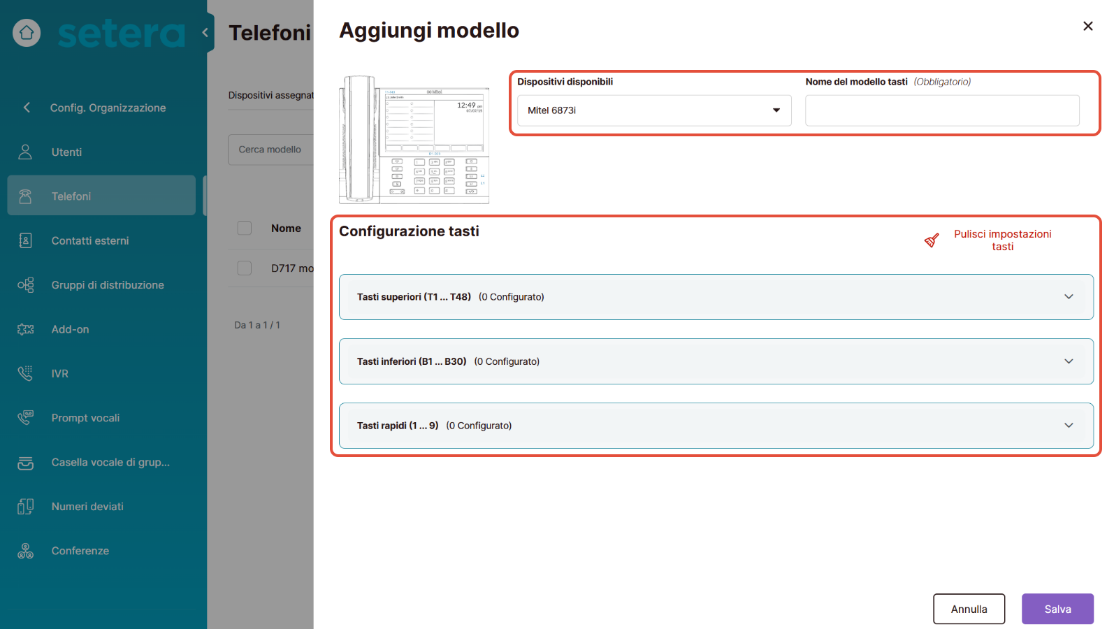 Per accedere alla scheda di un telefono ed effettuare modifiche: