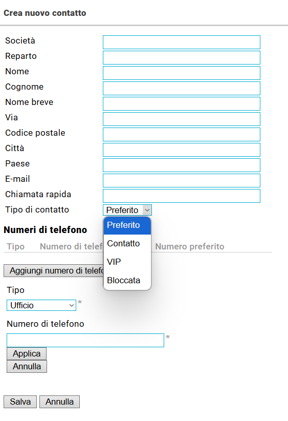 Seleziona il tipo di contatto: Preferito, VIP, Bloccato o Contatto Normale.